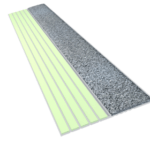 - The color contrasting the non-slip material with advanced photoluminescent technology provides step edge visibility in all light conditions.