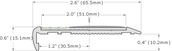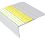Rely on Ecoglo®’s F7-E30 Photoluminescent Anodized Flat Stair Nosing to provide excellent step-edge visibility and enhances egress speeds in all lighting conditions. Our expertly engineered photoluminescent strip is integrally bonded into the aluminum stair nosing, along with a non-slip strip, which provides a stark color contrast, further enhancing step edge visibility. After the power fails in your facility, rely on this luminous egress path marking product to cut through shadows and provide a bright, easy to follow source of egress lighting. The sleek aluminum profile of Ecoglo®’s stair nosing provides a modern look to any facility, without distracting from the facility’s design. To best meet the needs of any project, our metal stair nosing can easily be installed on a range of substrates, such as concrete, timber, tile, steel and checker plate. The safety of all people in a facility depends on a clear egress plan and advance site preparation including clear marking of escape routes. Photoluminescent egress marking systems installed in exit stairwells are a critical, code-required component of any building safety system. Photoluminescent markings are always on, full proof systems to guide people out of buildings during any type of emergency conditions. Charges with ambient light. Always-on visible light. No electricity required. Our photoluminescent systems are comprised of materials including aluminum, epoxies, PVC, tapes, and paints . A one-inch wide “glowing” stripe is applied to the leading edge the steps, on handrails, and along the perimeter of landings and pathways leading out of the building. General Information Install with polyurethane adhesive and mechanical fasteners, or adhesive only. Supply with pre-drilled countersunk holes. Includes stainless steel fasteners and concrete nylon anchors. Standard location is 2″ from each end and approx. 12″ apart. Available in cut to length sizes. (Tolerance +or- 1/8”) Standard lengths are 8ft and 10ft. Inserts are supplied unattached. Inserts are installed over the mechanical fasteners using a polyurethane adhesive (included). Inserts can be cut using a shear. Aluminum nosings are cut with a saw. Cutting inserts with saw will damage the saw blade. Weight: 0.439 lbs/ft. Aluminum Finish Available in Clear Anodized Aluminum Finish Black, Light Bronze and, Dark Bronze Anodize finishes are available at an additional cost