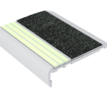 - The color contrasting the non-slip material with advanced photoluminescent technology provides step edge visibility in all light conditions.